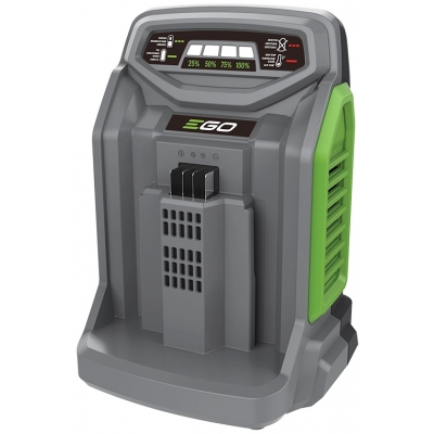Зарядное устройство EGO CH5500 для простой и быстрой зарядки литий-ионных аккумуляторов. Данная модель обладает четырьмя индикаторами уровня заряда с шагом 25% и системой защиты от перезаряда аккумулятора. При достижении 100% заряда питание автоматически отключается. Устройство снабжено вентилятором и перфорацией для защиты от перегрева.